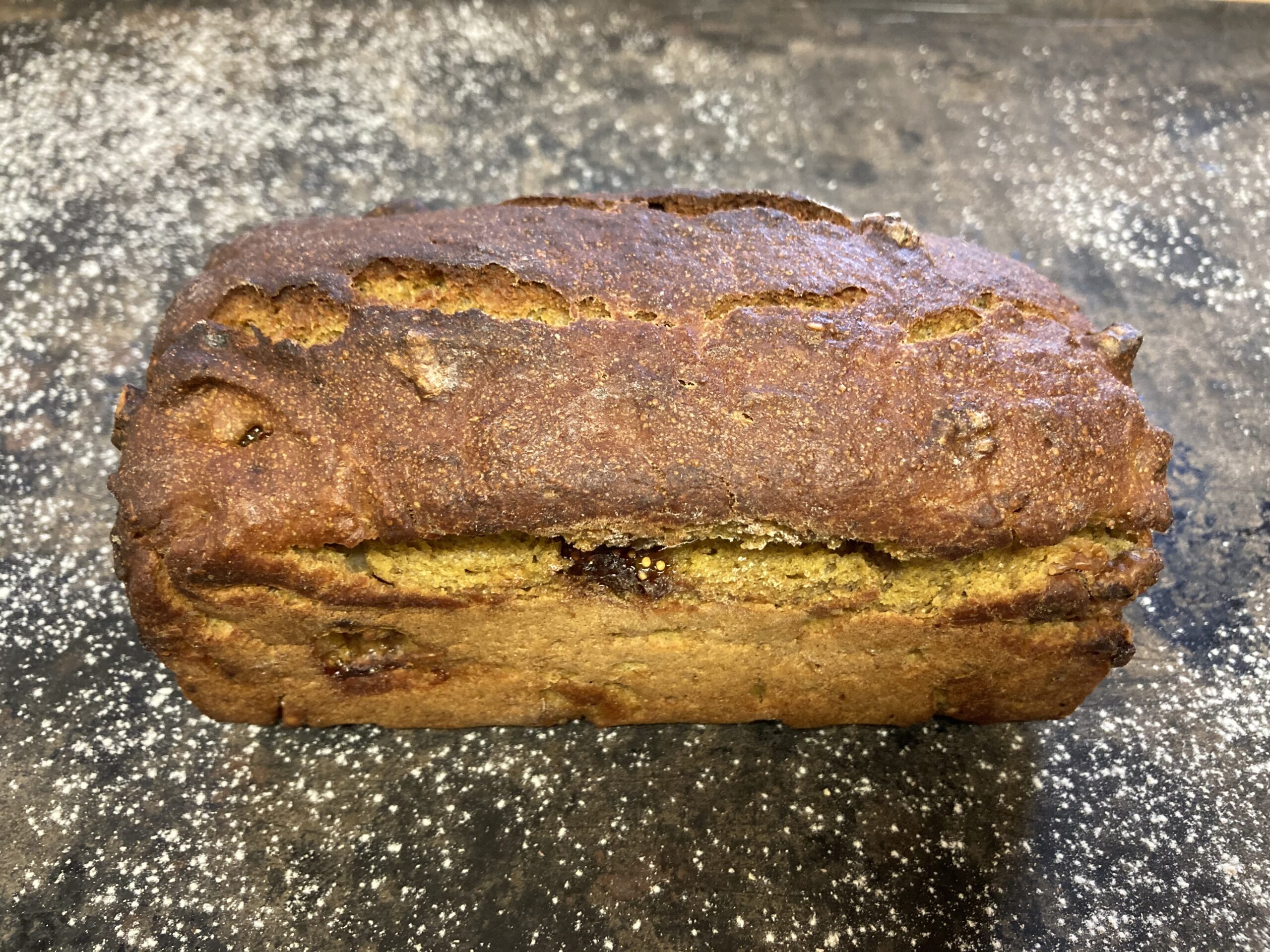Blé ancien T80, Seigle, levain de petit épeautre, miel, épices (curcuma, gingembre, cannelle), noix, figues